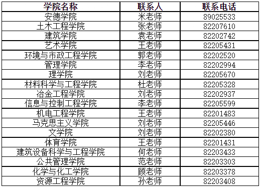 各招生學院聯系方式:
