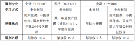 5. 我院根據接受調劑專業名額及報考生源情況,金融專業(全日制)調劑復試采取300%的差額復試比例。會計專業(非全日制)、稅務專業(非全日制)、金融專業(非全日制)考生參加調劑復試須符合我院公布的調入專業復試成績基本要求。
