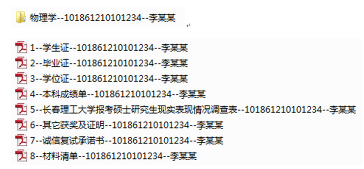 1.外部文件夾命名要求:“學科專業--考生編號--姓名”。