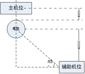 學(xué)生端采取雙機(jī)位模式,即面試時,有兩臺設(shè)備同時在不同角度實(shí)施拍攝,主機(jī)位設(shè)備用作面試,輔助機(jī)位設(shè)備用作監(jiān)控。面試時,考生坐在主機(jī)位正面,輔助機(jī)位放置在考生側(cè)后45度角、距離2M位置,從側(cè)后方拍攝面試過程。