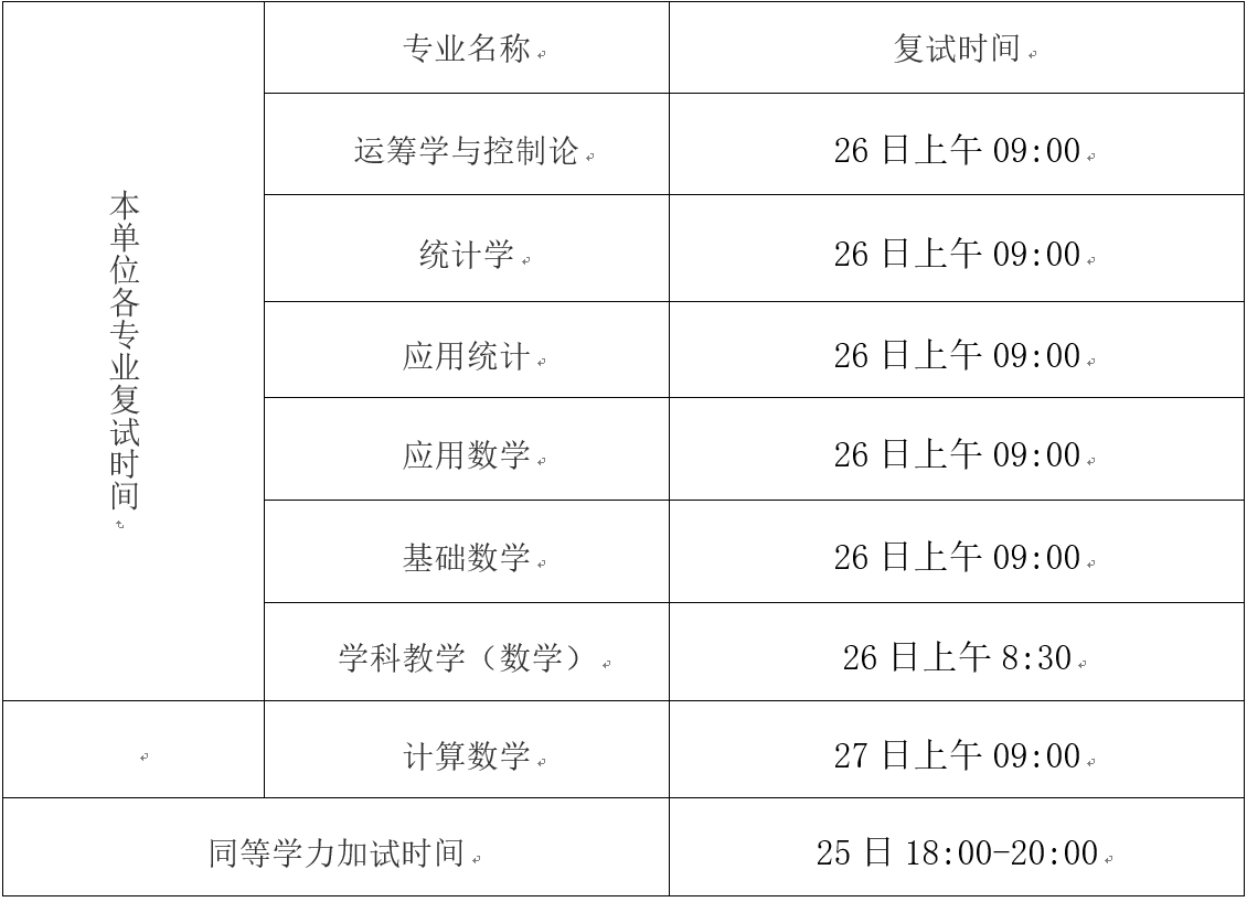以上就是“2022考研復試安排_復試時間_復試方式:山東師范大學數學與統計學院2022年碩士研究生復試工作安排”的全部內容。更多內容請持續關注!