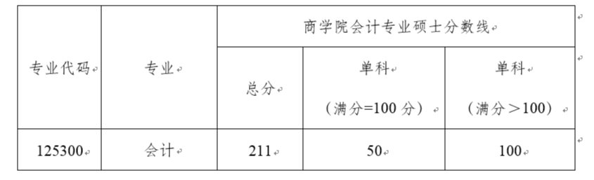 凡第一志愿報考我院會計碩士,且達到我校復試分數線(總分、單科,見下表)的考生,均可參加我院2022年會計碩士專業學位研究生復試。