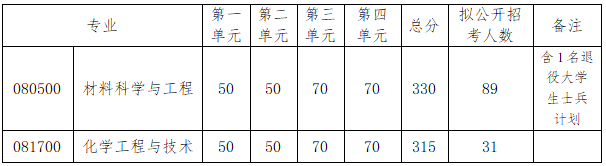 (3)以同等學力參加復試的考生,報考材料科學與工程加試科目為《半導體物理》、《材料科學與工程》,報考化學工程與技術加試科目為《有機化學》、《結構化學》。加試方式為面試,每科滿分100分,面試時間一般不少于10分鐘。加試成績不計入復試總成績。所有加試科目的成績須達到滿分的60%,否則復試不合格。