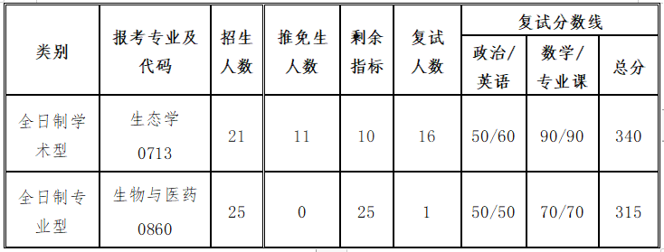 我院生物與醫藥(086000)有缺額,調劑工作另行通知。
