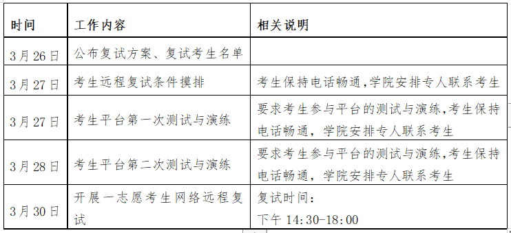 三、復試工作時間安排