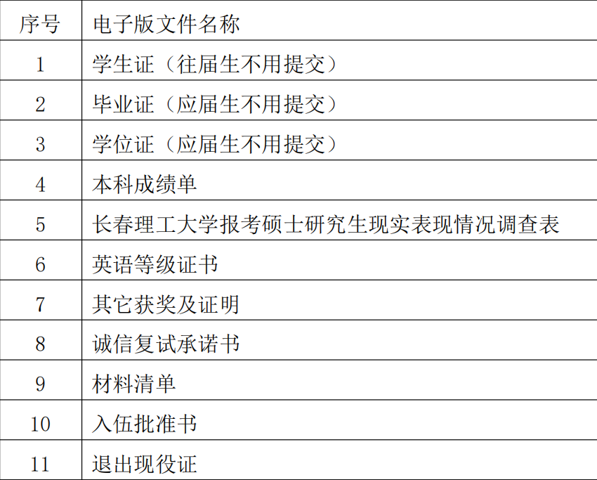 (7)考生提交材料清單(見《長春理工大學2022年碩士研究生復試考生提交材料說明》附件3。