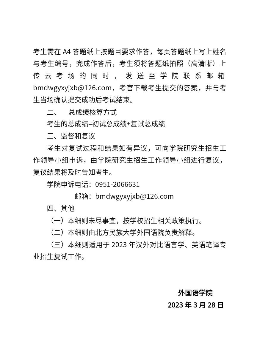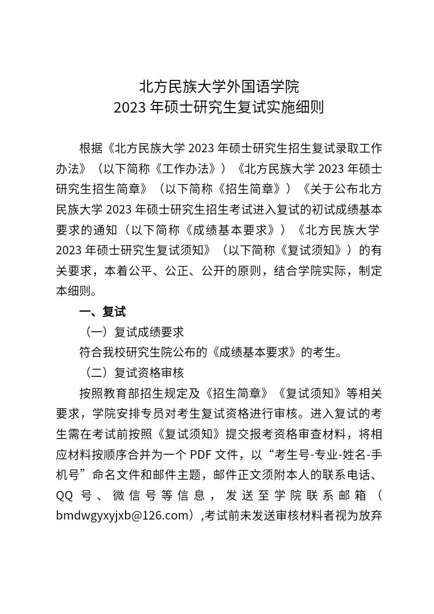 2023考研復試安排_復試時間_復試方式:北方民族大學外國語學院2023年碩士研究生復試實施細則