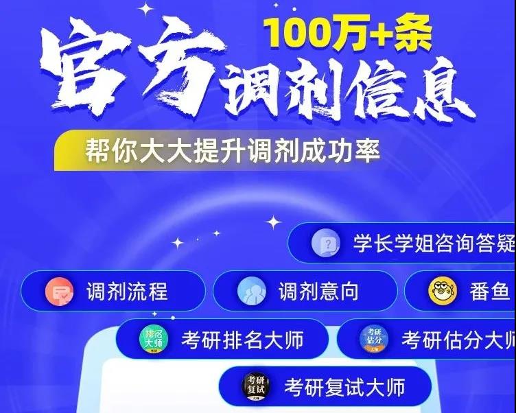 不知道去哪里找調(diào)劑信息的同學們,關注下方【考研調(diào)劑大師】小程序,院校調(diào)劑信息實時更新,做好你的信息搜集后備軍!