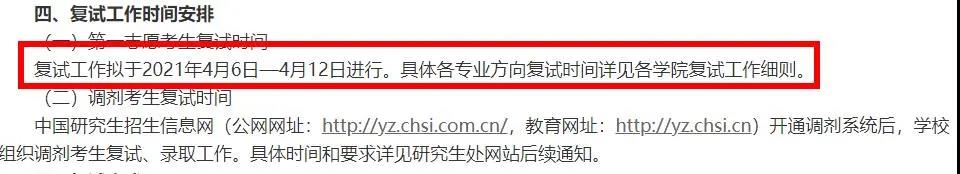 4月6日-4月12日一志愿考生線下復試,調劑通知還未發布。