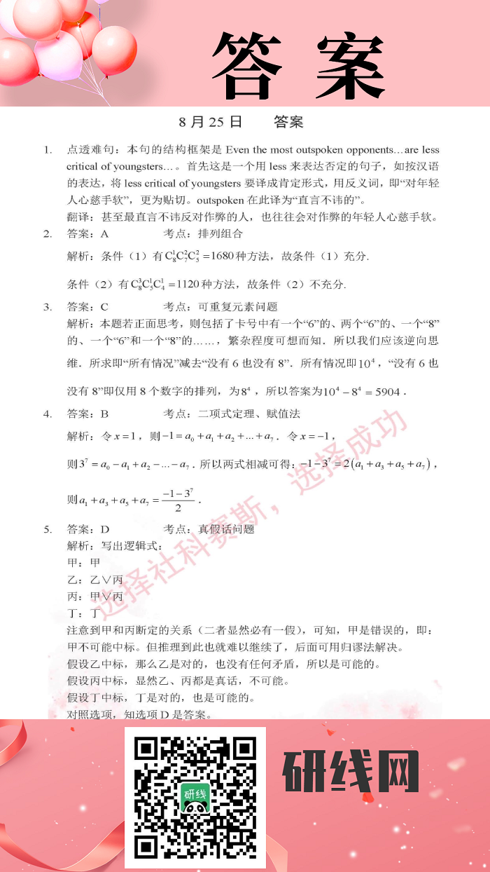 以上就是今日每日一練的全部內容,跟著每日一練,考研輕松復習!更多考試練習,點擊考研每日一練