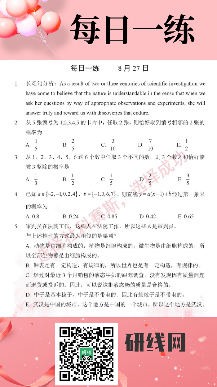為了更好的復(fù)習(xí)和鞏固已經(jīng)學(xué)過的知識,研線網(wǎng)小編為大家整理出幾道題,作為每日的練習(xí),希望能夠幫助到同學(xué)們哦!