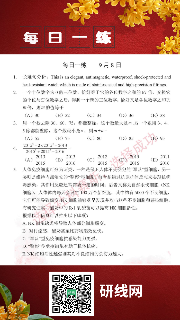為了更好的復習和鞏固已經學過的知識,研線網小編為大家整理出幾道題,作為每日的練習,希望能夠幫助到同學們哦!