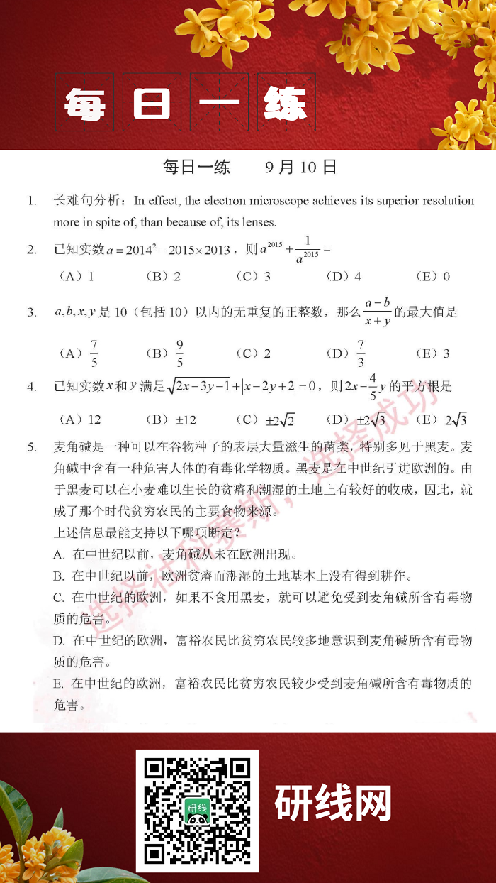 以上就是今日每日一練的全部內(nèi)容,跟著每日一練,考研輕松復習!更多考試練習,點擊考研每日一練!