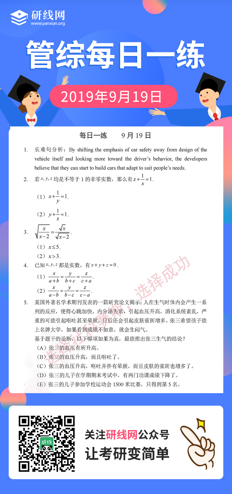 9月19日:2020考研管理類聯考每日一練以及答案