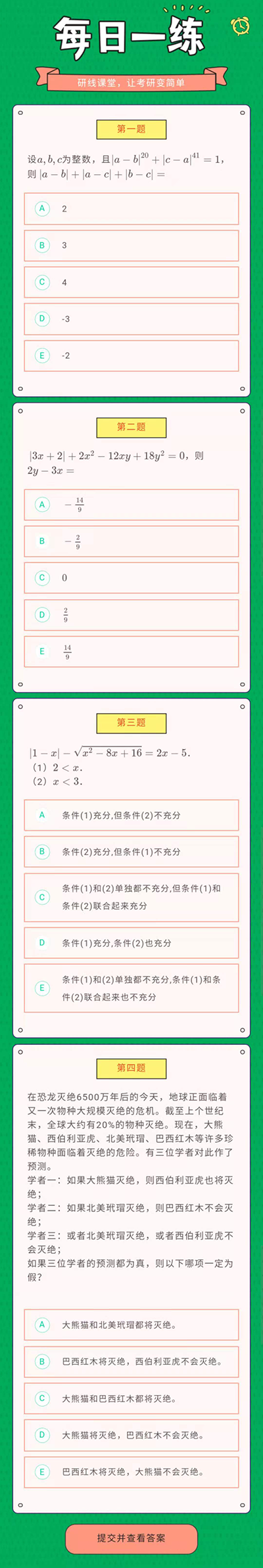 以上就是今日每日一練的全部內容,跟著每日一練,考研輕松復習!更多考試練習,點擊考研每日一練