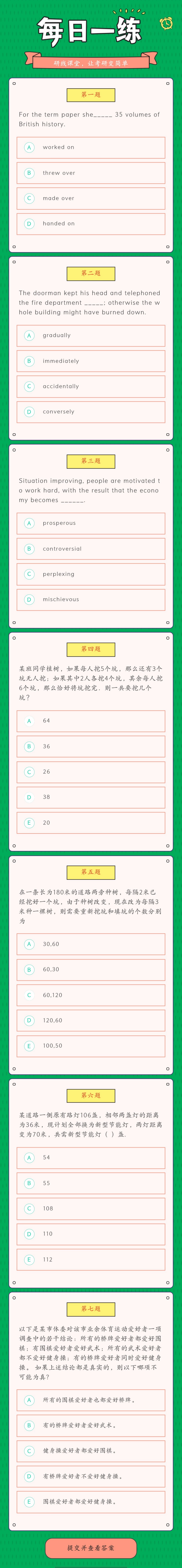 6月17日:2022考研管理類聯考每日一練以及答案