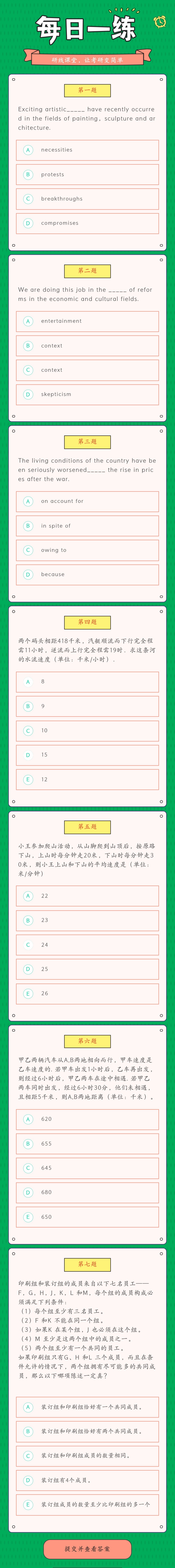 6月24日:2022考研管理類聯考每日一練以及答案