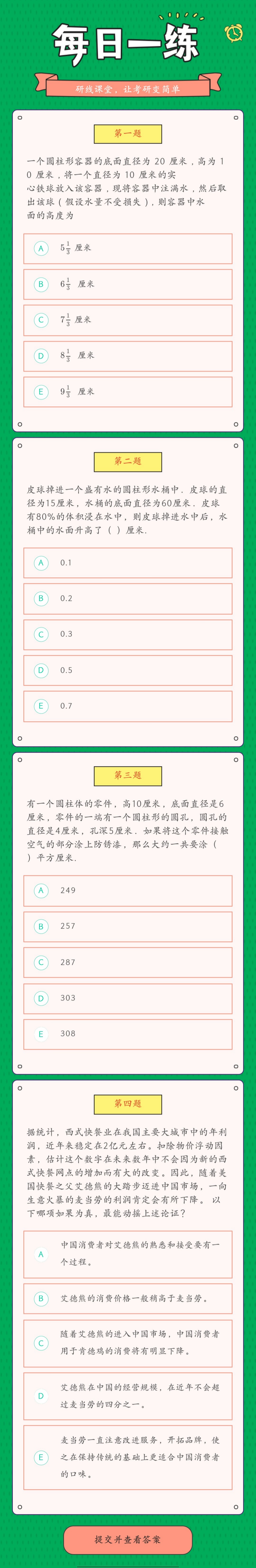 為了更好的復(fù)習(xí)和鞏固已經(jīng)學(xué)過的知識(shí),研線網(wǎng)小編為大家整理出幾道題,作為每日的練習(xí),希望能夠幫助到同學(xué)們哦!