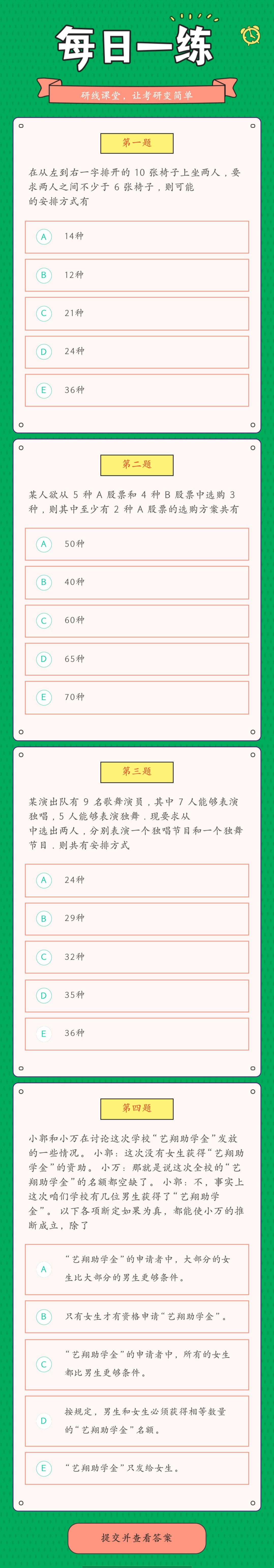 為了更好的復(fù)習(xí)和鞏固已經(jīng)學(xué)過的知識(shí),研線網(wǎng)小編為大家整理出幾道題,作為每日的練習(xí),希望能夠幫助到同學(xué)們哦!