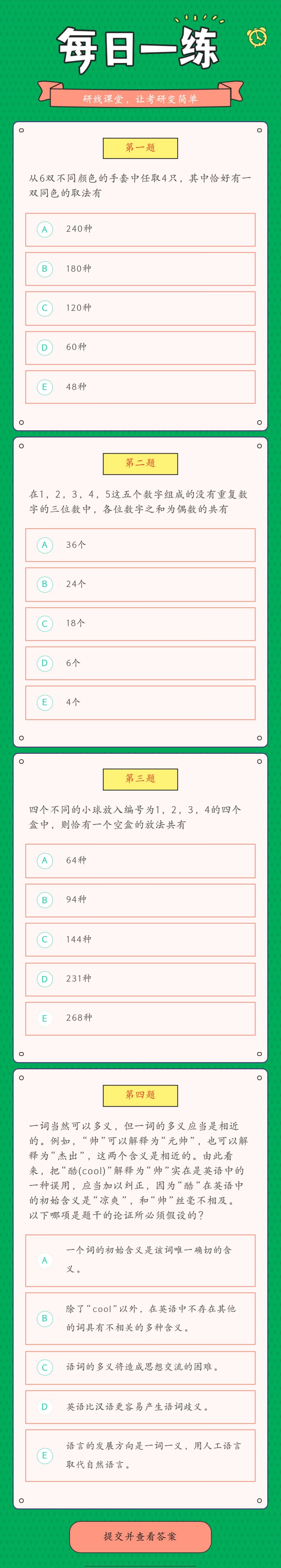 以上就是今日每日一練的全部內(nèi)容,跟著每日一練,考研輕松復(fù)習(xí)!更多考試練習(xí),點(diǎn)擊考研每日一練