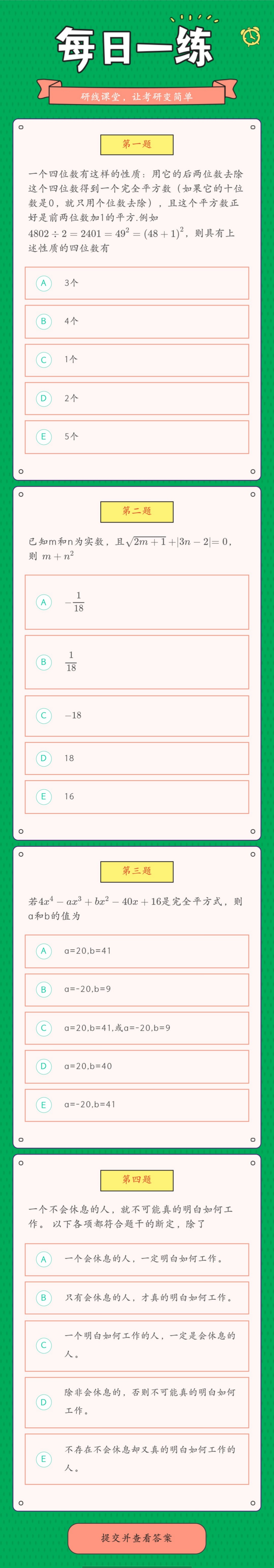 點擊進入:研線課堂萬題庫,每日習題不重復。全面題型任你刷,真題解析隨便看。