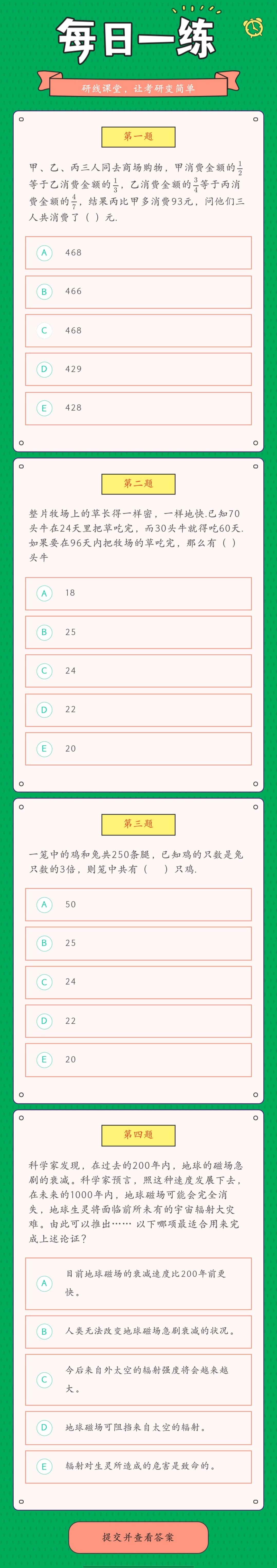 以上就是今日每日一練的全部內容,跟著每日一練,考研輕松復習!更多考試練習,點擊考研每日一練
