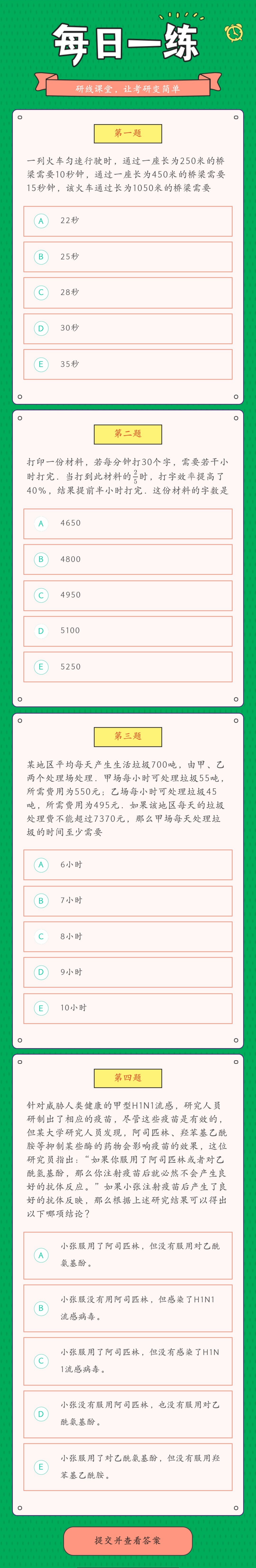 為了更好的復習和鞏固已經學過的知識,研線網小編為大家整理出幾道題,作為每日的練習,希望能夠幫助到同學們哦!