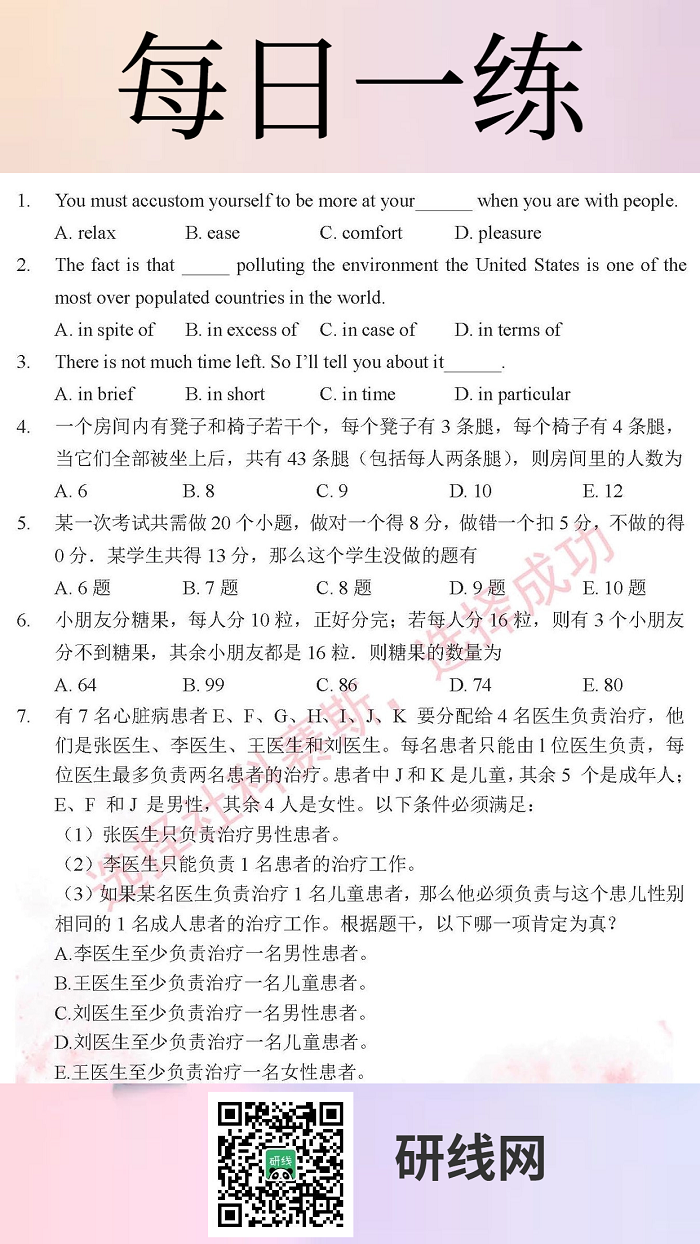 以上就是今日每日一練的全部內容,跟著每日一練,考研輕松復習!更多考試練習,點擊管理類聯(lián)考每日一練!