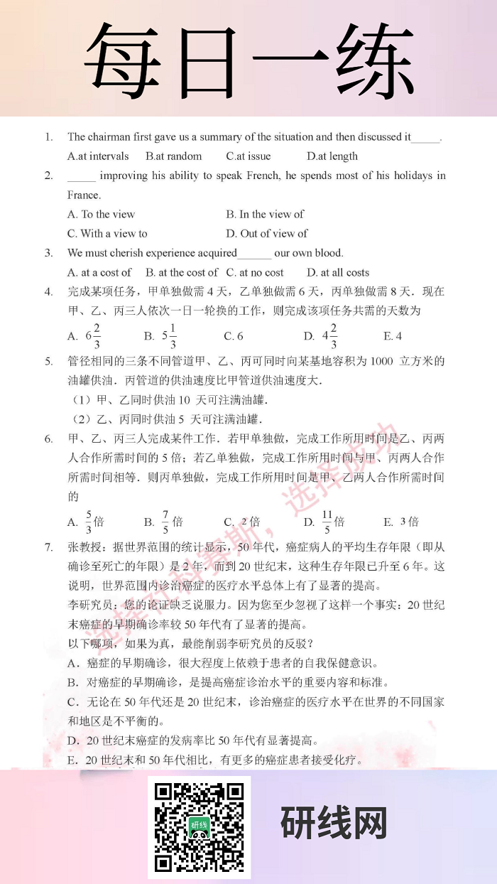 為了更好的復習和鞏固已經學過的知識,研線網小編為大家整理出幾道題,作為每日的練習,希望能夠幫助到同學們哦!