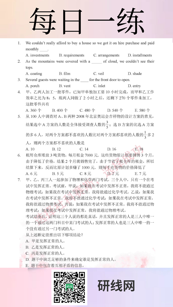 以上就是今日每日一練的全部內容,跟著每日一練,考研輕松復習!更多考試練習,盡在“每日一練”欄目。