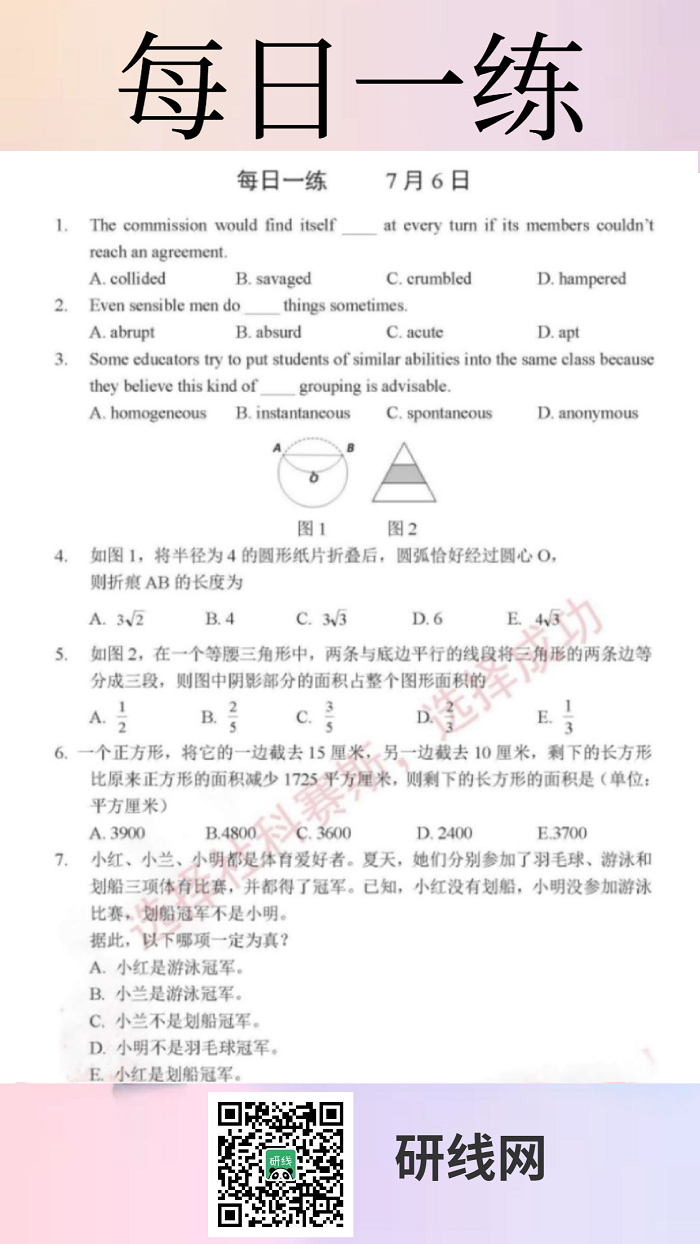為了更好的復習和鞏固已經學過的知識,研線網小編為大家整理出幾道題,作為每日的練習,希望能夠幫助到同學們哦!
