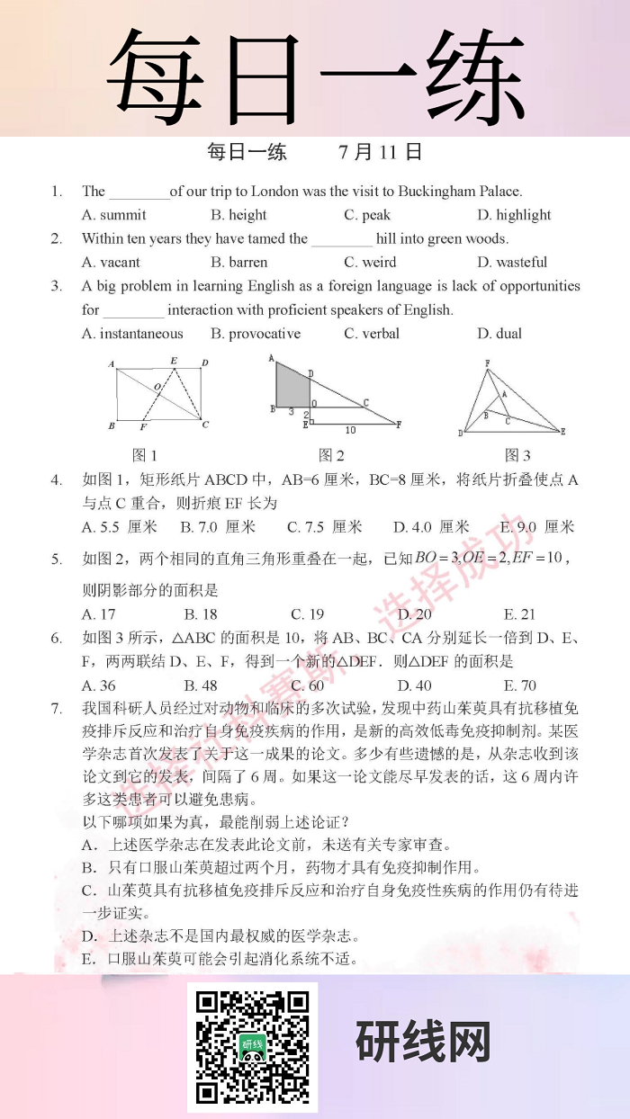 以上就是今日每日一練的全部內(nèi)容,跟著每日一練,考研輕松復(fù)習(xí)!更多考試練習(xí),點(diǎn)擊考研每日一練!