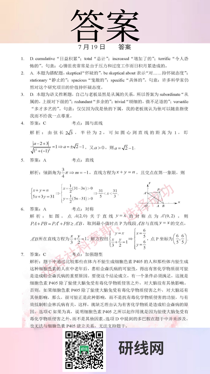為了更好的復(fù)習(xí)和鞏固已經(jīng)學(xué)過(guò)的知識(shí),研線網(wǎng)小編為大家整理出幾道題,作為每日的練習(xí),希望能夠幫助到同學(xué)們哦!