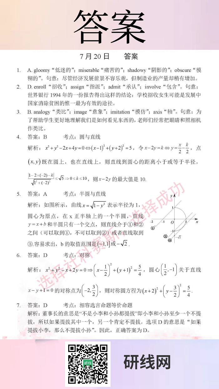 7月20日:2020考研管理類聯考每日一練以及答案