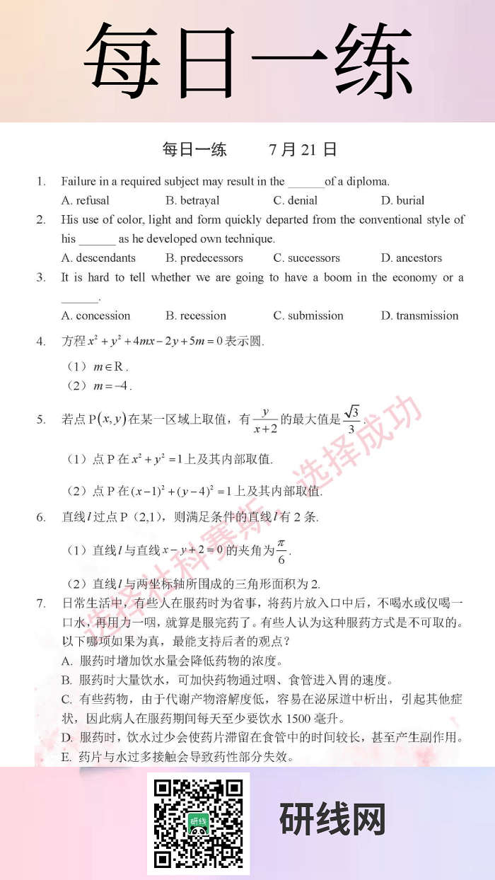 為了更好的復習和鞏固已經學過的知識,研線網小編為大家整理出幾道題,作為每日的練習,希望能夠幫助到同學們哦!