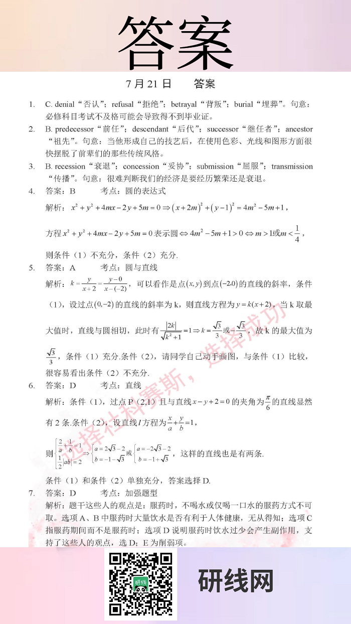 以上就是今日每日一練的全部內容,跟著每日一練,考研輕松復習!更多考試練習,點擊考研每日一練