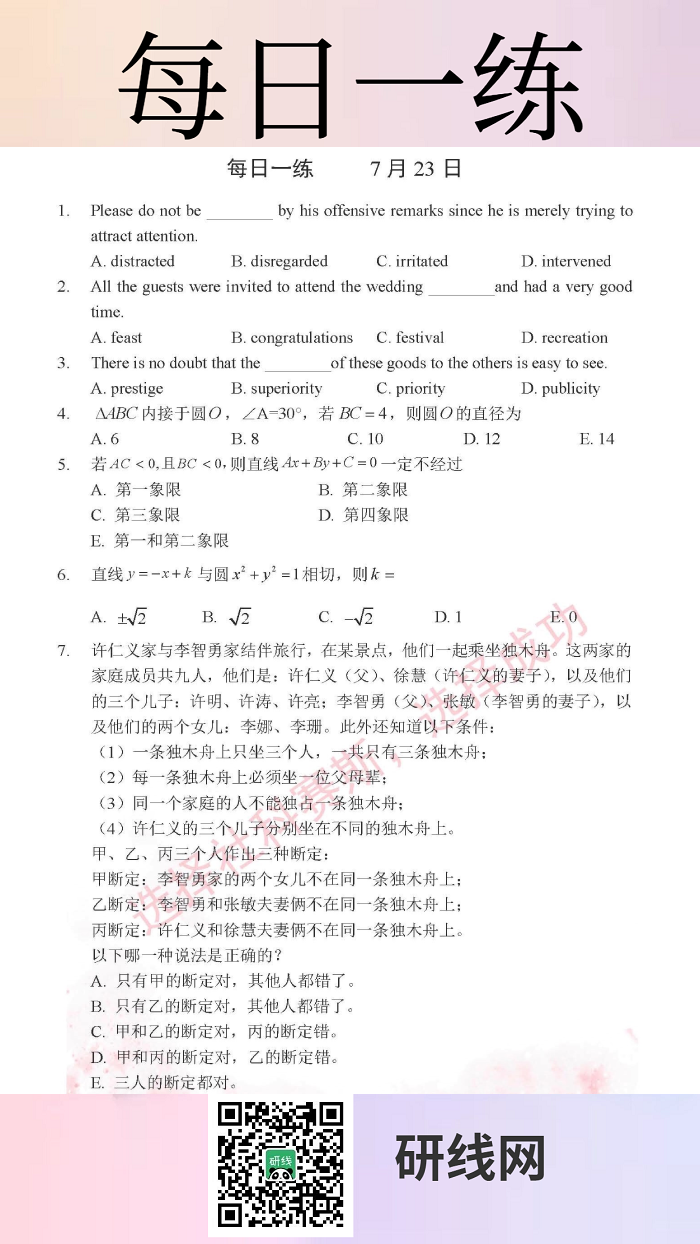 為了更好的復習和鞏固已經學過的知識,研線網小編為大家整理出幾道題,作為每日的練習,希望能夠幫助到同學們哦!