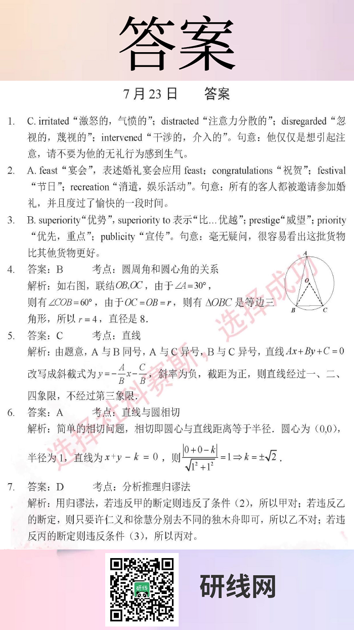 以上就是今日每日一練的全部內容,跟著每日一練,考研輕松復習!更多考試練習,點擊考研每日一練