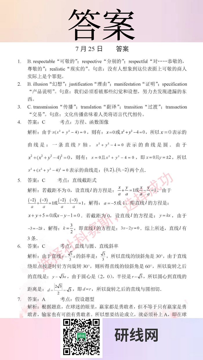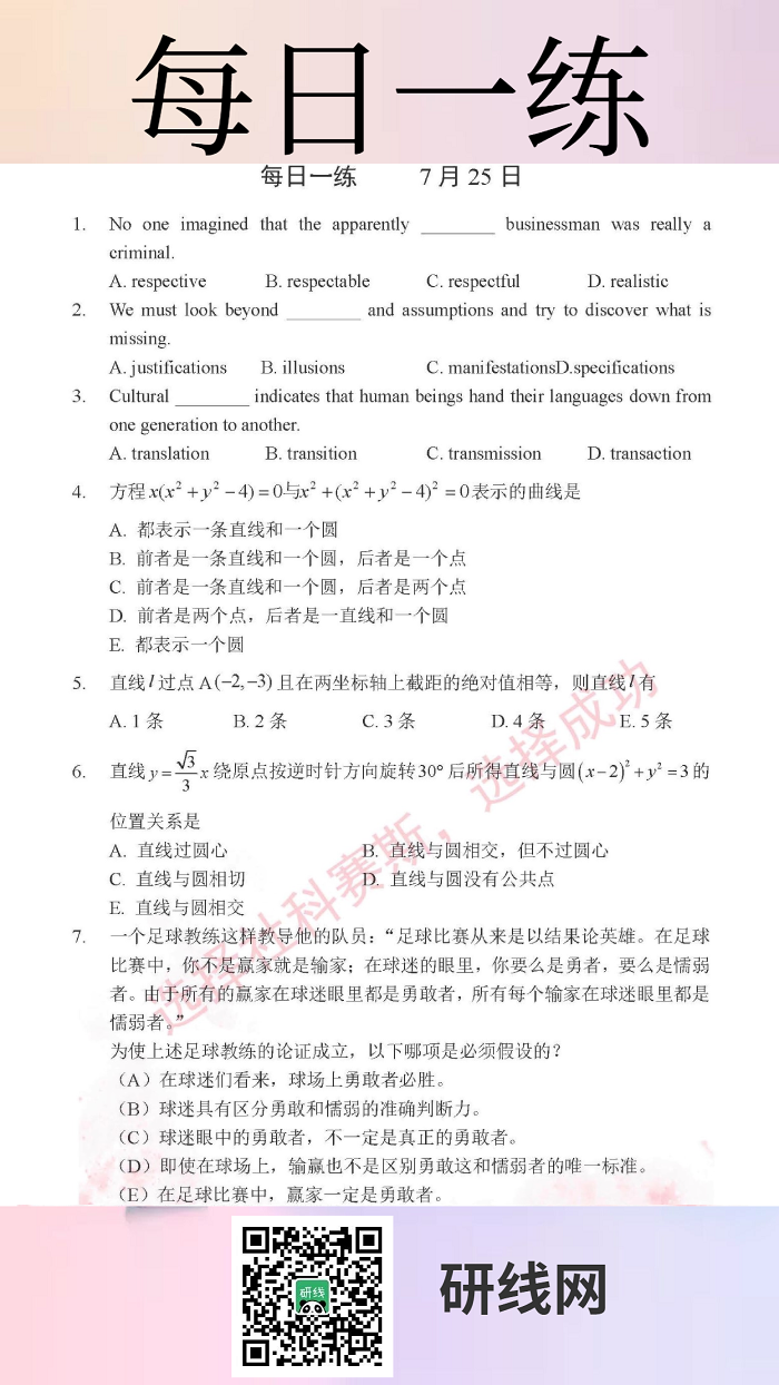 7月25日:2020考研管理類聯考每日一練以及答案