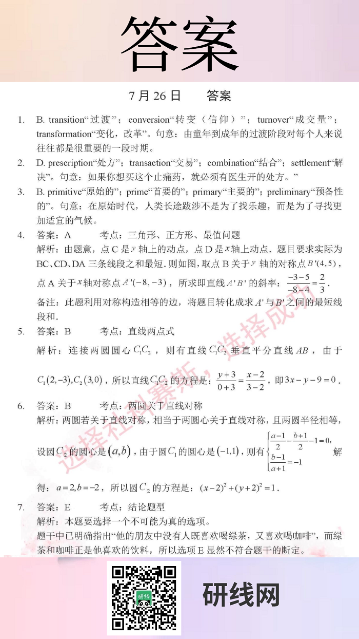 7月26日:2020考研管理類聯考每日一練以及答案