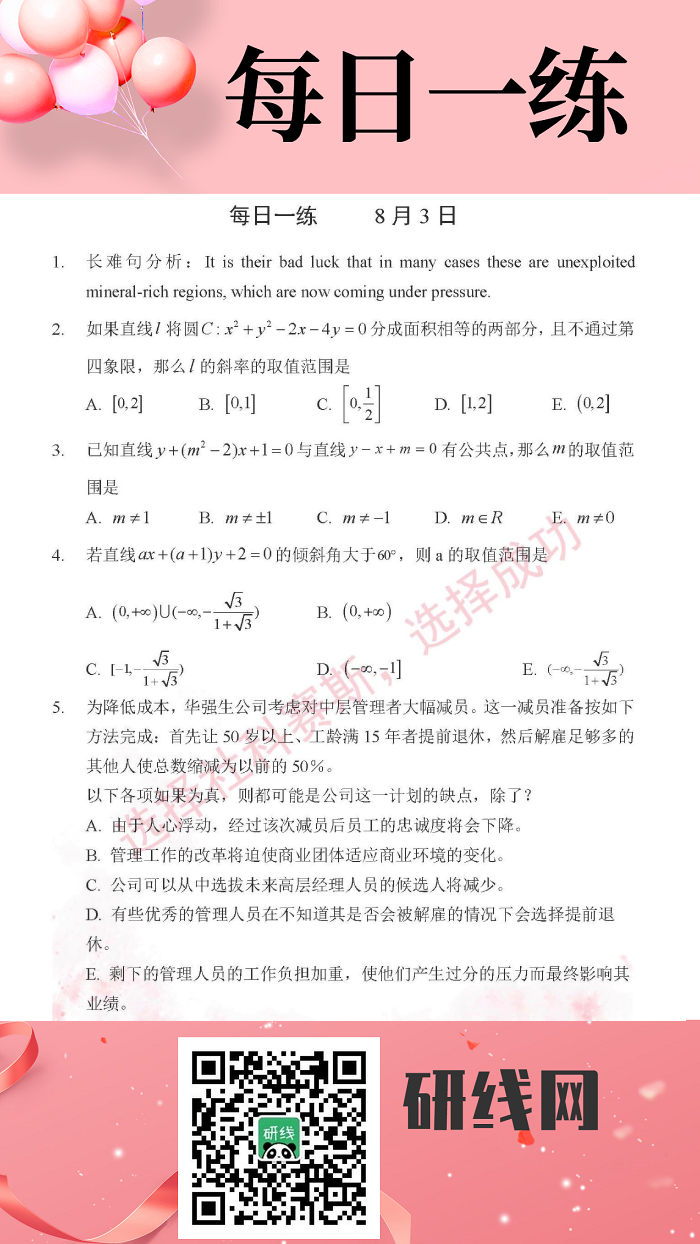 為了更好的復習和鞏固已經學過的知識,研線網小編為大家整理出幾道題,作為每日的練習,希望能夠幫助到同學們哦!
