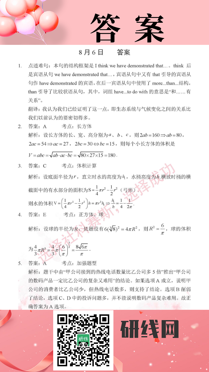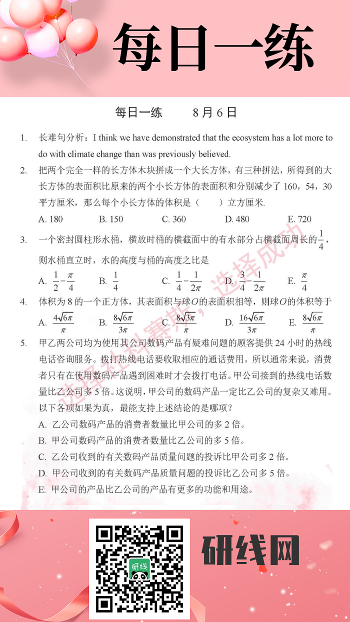 為了更好的復習和鞏固已經學過的知識,研線網小編為大家整理出幾道題,作為每日的練習,希望能夠幫助到同學們哦!