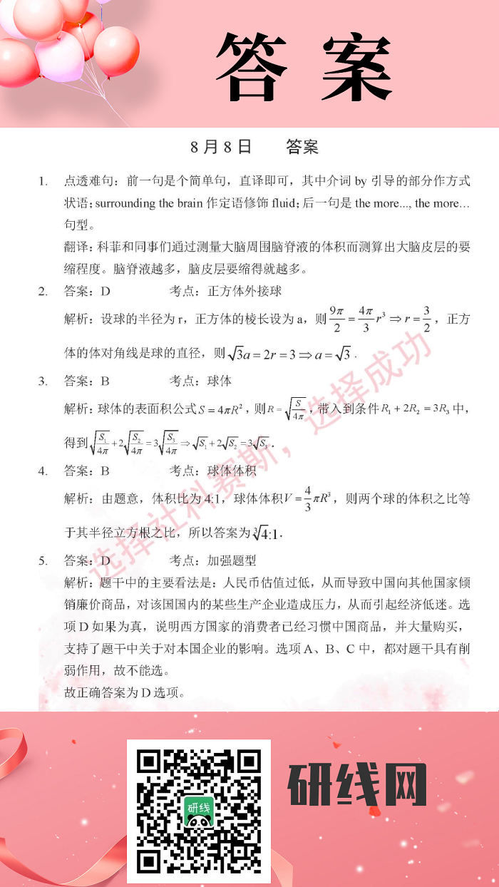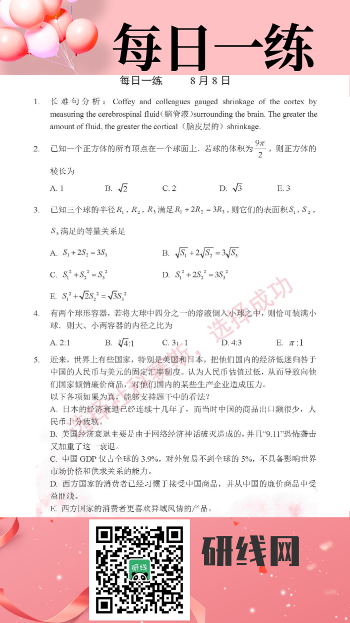 為了更好的復習和鞏固已經學過的知識,研線網小編為大家整理出幾道題,作為每日的練習,希望能夠幫助到同學們哦!