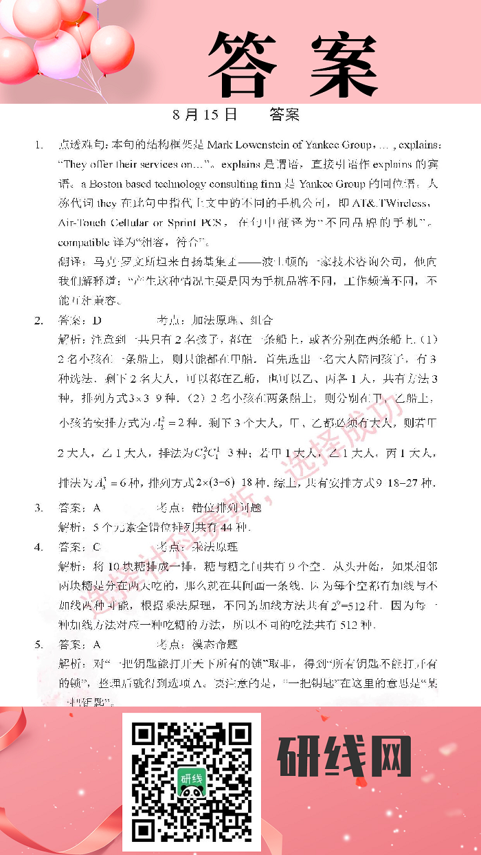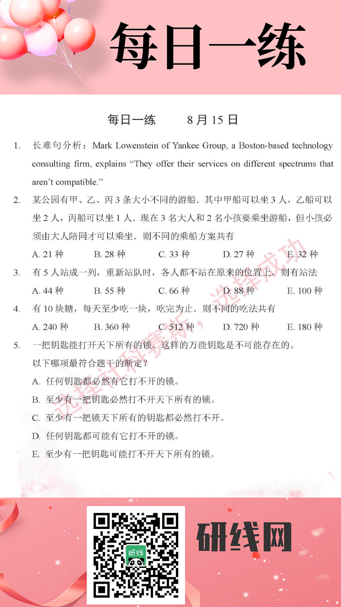 為了更好的復習和鞏固已經學過的知識,研線網小編為大家整理出幾道題,作為每日的練習,希望能夠幫助到同學們哦!