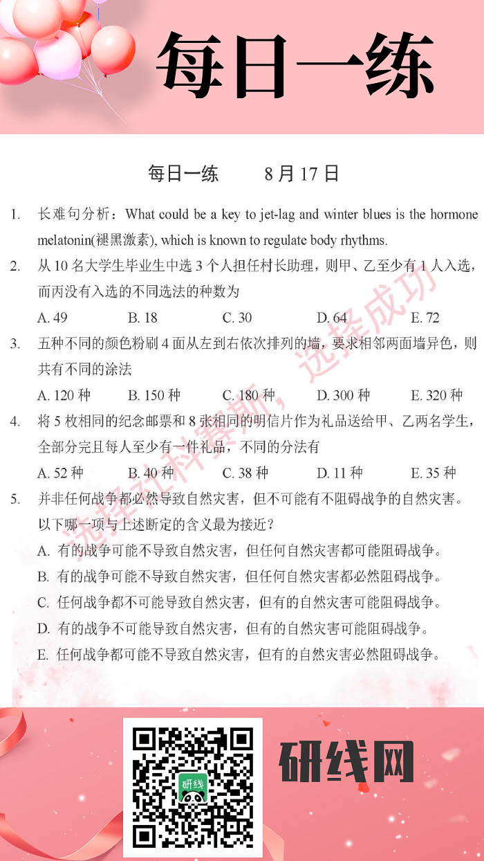 8月17日:2020考研管理類聯考每日一練以及答案