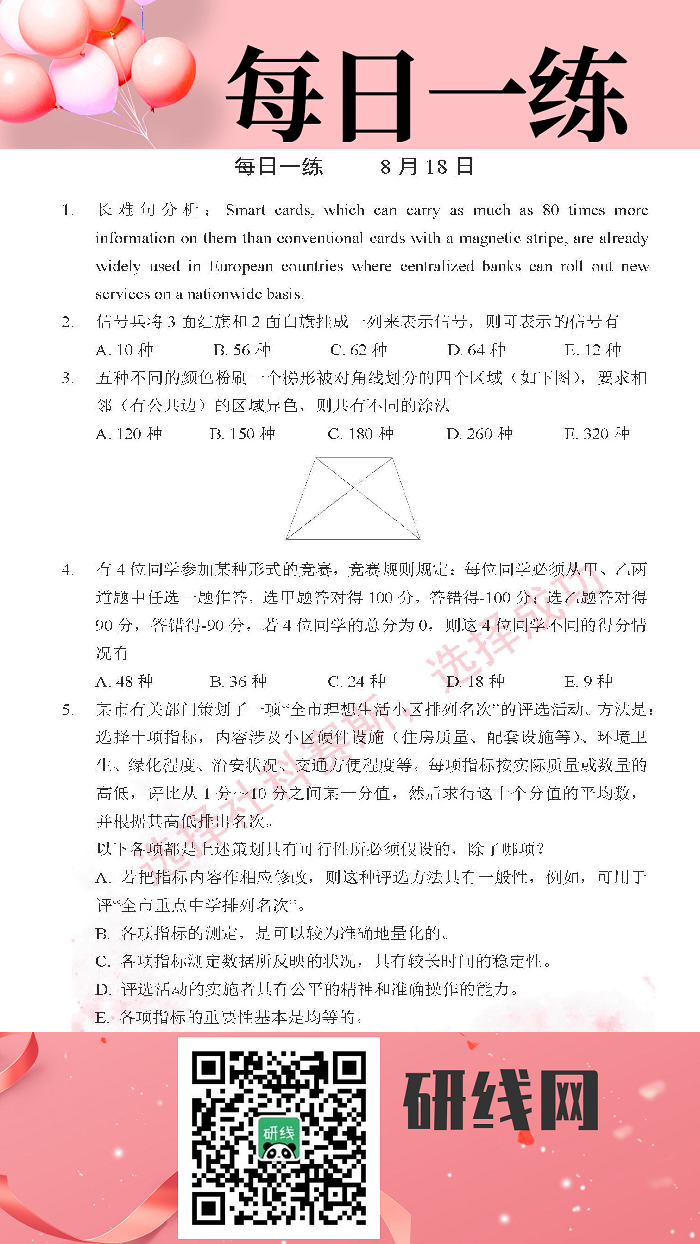 以上就是今日每日一練的全部內容,跟著每日一練,考研輕松復習!更多考試練習,點擊考研每日一練