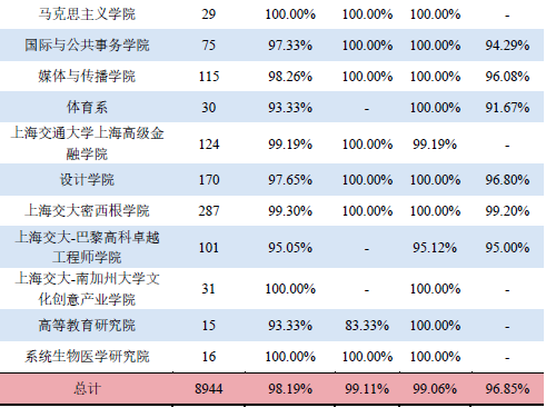 2019年上海交通大學本科、碩士和博士畢業生的就業率均達到96%以上,分別為96.85%、99.06%和99.11%。