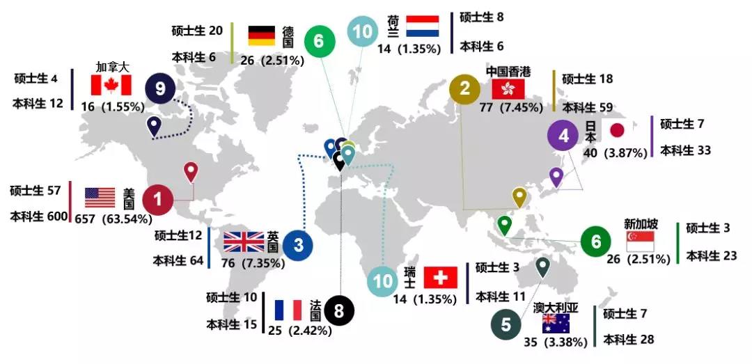 根據世界大學學術排名(Academic Ranking of World Universities,簡稱ARWU)2019 年發布最新排名,我校出國(境)深造畢業生生中有40.23%赴世界排名前30位國(境)外高校留學深造,人數為416人。