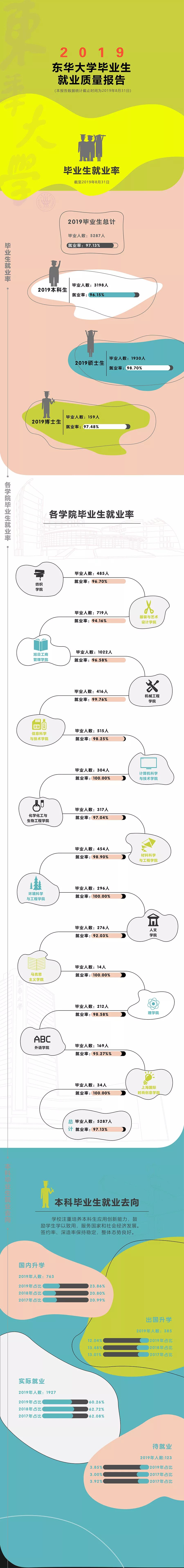 截至2019年8月31日,東華大學(xué)2019屆畢業(yè)生總體就業(yè)率為97.13%。