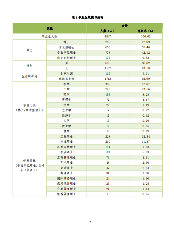 北京林業(yè)大學(xué)2020年研究生畢業(yè)生就業(yè)質(zhì)量年度報告